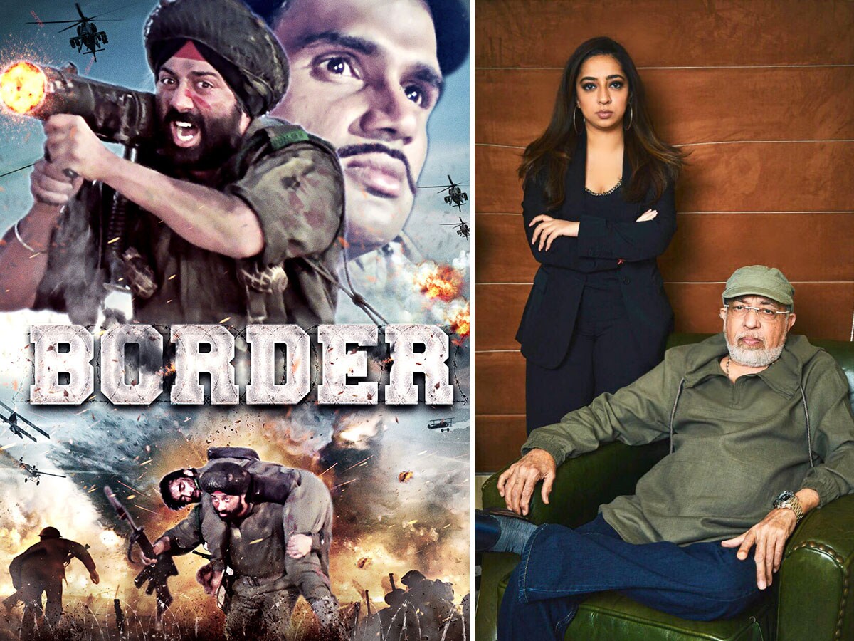 The poster of the 1997 war film Border, written, produced and directed by JP Dutta. Border 2, currently being shot, is produced by Nidhi Dutta, seen here with father J P Dutta.