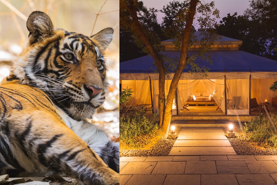 Up north lies tented camp Aman-i-Khà¡s in the Aravalli Hills on the fringes of Rajasthan’s Ranthambore National Park--an important domain for the Bengal Tiger.