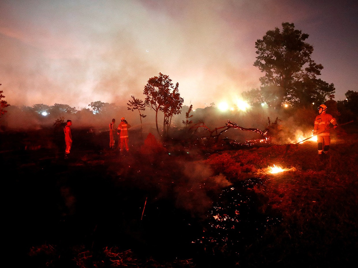 Firefighters work to extinguish wildfires near downtown Brasilia, Brazil on June 1, 2022. Among the list of countries with the most forest losses, Brazil lost 453,000 hectares due to wildfires on an annual average. Image: Adriano Machado/ Reuters