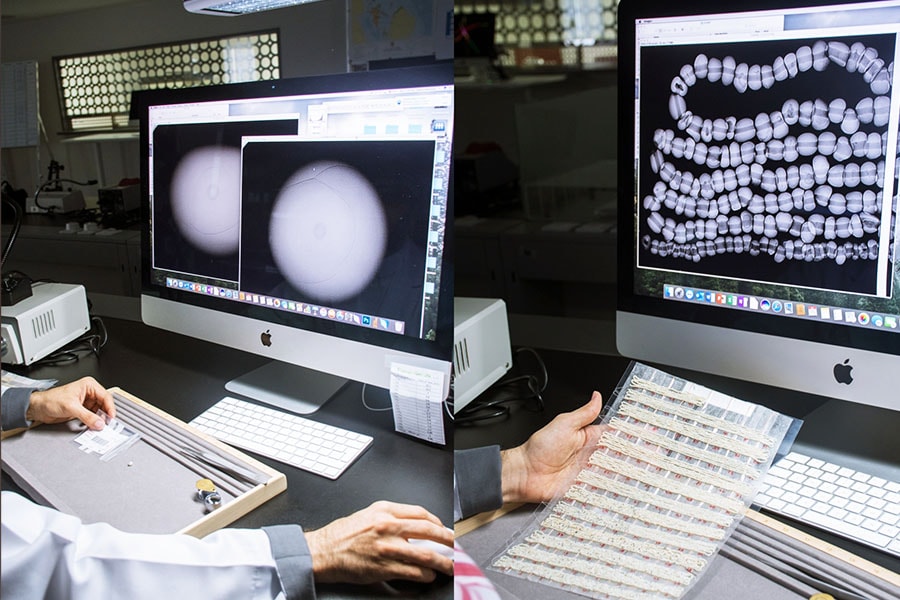 An assessor at DANAT scrutinizes pearls with the gemological X-ray machine that helps them detect growth lines that distinguish natural pearls from their cultured counterparts Image: Courtesy DANAT