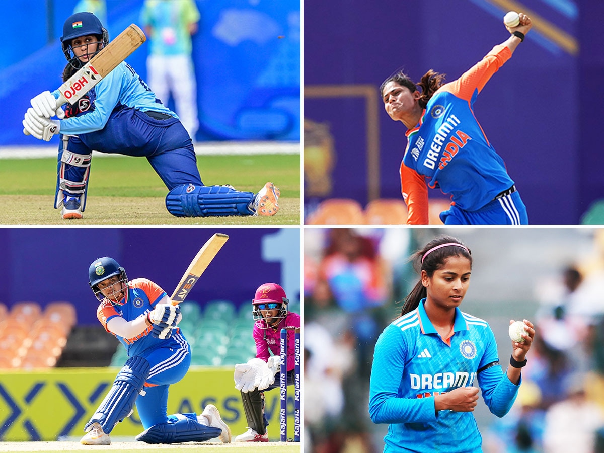 (clockwise from above left) Shafali Verma, Jemimah Rodrigues, Radha Yadav and Shreyanka Patil in action playing for India ahead of the T20 World Cup.Image: Sameera Peiris / Getty Images Ishara S. Kodikara/ AFP Sameera Peiris/Getty Images Abhishek Chinnappa/Getty Images