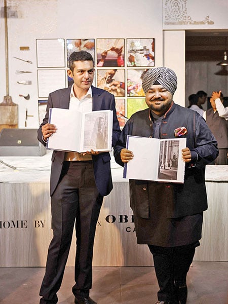 Rudra Chatterjee (left),MD, Luxmi Group, and chairman of Obeetee, with designer JJ Valaya launching the JJ Valaya collection in September.