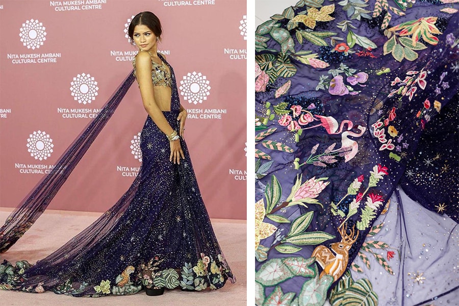 Q. Your timeless creations on Hollywood actress Zendaya and American supermodel Gigi Hadid made headlines. What was your intention when choosing the designs for each one for the event? For Zendaya, I wanted it to look like a sari actually. It was not an Indian piece. The theme was India inspired and our sari is the most iconic outfit in the whole world. Nothing like a sari exists. So, for me it was taking the special sari and creating something like that.
