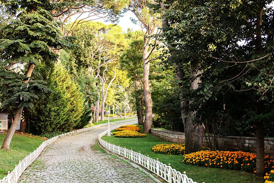 The grounds surrounding Ihlamur Kasri, near BeÅŸiktaÅŸ in downtown Istanbul, Aug. 20, 2022. The buildings and the gardens of Ihlamur Kasri were laid out according to Islamic principles. Image: Bradley Secker/The New York Times