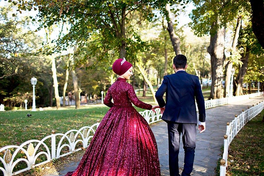 A couple explores the gardens at Hidiv Kasri as they take photos for their upcoming wedding, in Istanbul in November 2019. Image: Danielle Villasana/The New York Times