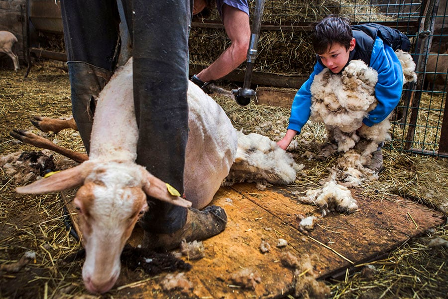 A kid from the Betriu family helps in the shearing of their sheep, Andorra. Transhumance refers to the seasonal movement of people with their livestock between geographical or climatic regions. Each year, in spring and autumn, men and women herders organise the movement of thousands of animals along traditional pastoral paths. They move on foot or horseback, leading with their dogs and sometimes accompanied by their families. An ancestral practice, transhumance stems from a deep knowledge of the environment. It entails social practices and rituals related to animal care, breeding and training and managing natural resources. Transhumance thus contributes to social inclusion, strengthening cultural identity and ties between families, communities and territories while counteracting the effects of rural depopulation.