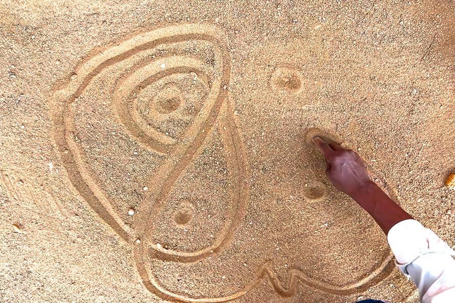 Sona refers to drawings and geometric figures drawn on sand like the one of the African spotted eagle-owl. Practised by the Lunda Cokwe and neighbouring peoples in eastern Angola, it is a form of expression that seeks to convey beliefs, thoughts and emotions, as well as the relationship between human beings and nature. The figures and drawings are viewed as a means of transmitting stories, knowledge and collective memory to new generations. In recent decades, educational institutes have started using Sona to teach and advance knowledge about mathematics, ethnomathematics and anthropology, among others.