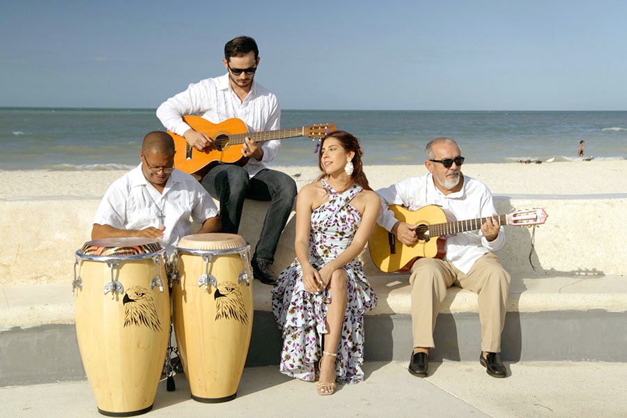 A group of bearers perform boleros on the beach of Progreso in Mérida, Yucà¡tan, Mexico. Bolero is an indispensable part of the Latin American sentimental song, with a strong lyrical character deeply rooted in Cuba and Mexico. It is a cultural amalgam which combines the language used in European poetry with the African rhythms of enslaved peoples and the sentiments of the native peoples of the Americas. Bolero"s lyrics allude to daily life, and the songs are performed in various spaces, from households to public areas and large concert halls, as well as in festivals and as serenades. The practice is generally passed down within families through oral tradition and imitation. As a robust cultural symbol for broad sectors of Cuban and Mexican societies, especially in urban areas, it has served as a means of expressing emotions and feelings for over a century.