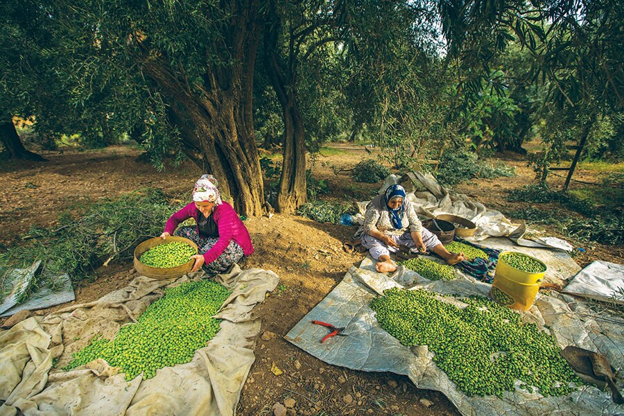 Women sort and break the olives during the harvest. In Tà¼rkiye, olive cultivation refers to grafting, pruning and fertilising wild olive trees, called delice, and picking, harvesting and processing the olives. The methods used are based on traditional knowledge and practices concerning nature, such as ideal soil characteristics, climate and manure. The olive trees are grafted and picked according to the folk calendar, and several rituals, festivals and social practices (such as folk plays, dances, contests and feasts) mark the beginning and end of the harvest season. For instance, villagers come together to pick the first olives of the season, and some olives are deliberately left in the groves for poor people to pick. Traditional knowledge, methods and practices have been transmitted orally and by participating in the associated practices within families and villages for centuries. In addition to the symbolism of the olive tree and leaf (which are associated with peace, eternity, wisdom and harmony), the practices concerning olive cultivation enhance solidarity, cooperation and harmony within the community.
