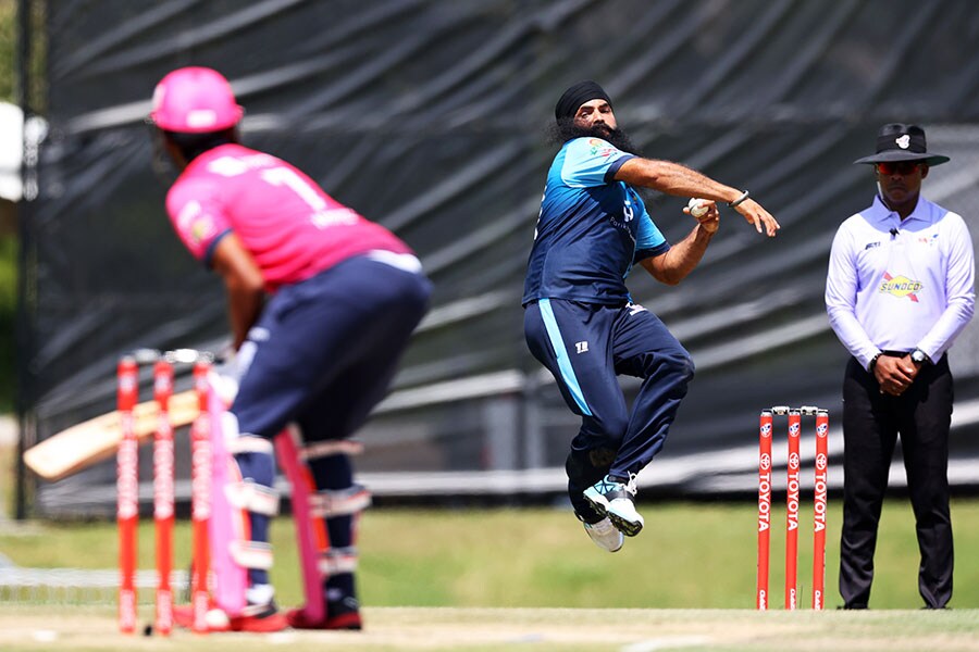 Kulvinder Singh of Silicon Valley Strikers in action against Seattle Thunderbolts in the Minor League Cricket (which preceded Majors) in North Carolina in late 2022.