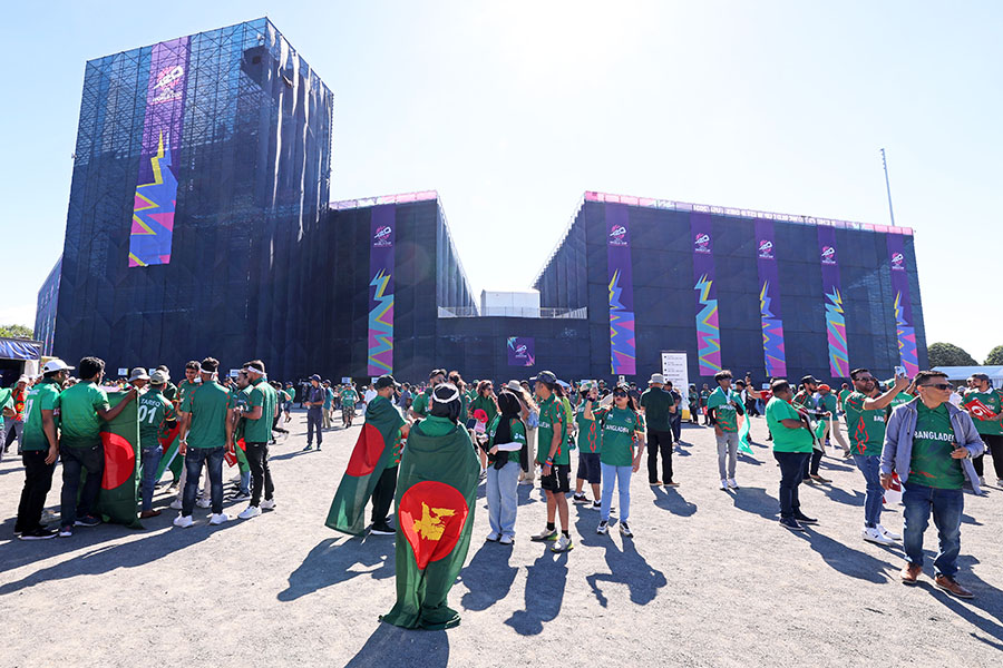 Fans of Bangladesh soak in the pre-match atmosphere before the T20 World Cup match against South Africa at Nassau Stadium on June 10, 2024, in New York.