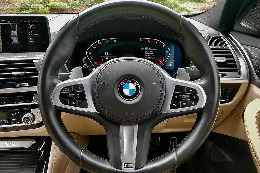 There’s no denying the fact that a lot of bits and bobs in the X4 can be deemed opulent and quite luxurious. The head-up display is quite nice to behold, even if it is a bit expected in this segment of cars. I particularly enjoyed the fact that it’s bright and legible even in the harshest of sunlight. Then there’s the leather-wrapped steering wheel that feels just perfect to hold, and might I add is just the right size as well. What’s also cool is the way the metallic inserts feel on the steering wheel. It’s quite easy to end up having buttons that feel cheap and low-rent, but BMW’s side-stepped that quite nicely. Similarly, the paddle-shifters behind the wheel feel sturdy and hefty every time you grab at them. Again, a very easy task to get wrong.
