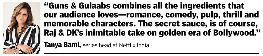 Interestingly, they’ve always taken risks with their genre picks—such as thriller/comedies or horror/comedies. “These are very risky combinations, since it can get classified into spoofs very easily," says DK. Guns & Gulaabs is also a genre bender, “that combines all the ingredients that our audience loves—romance, comedy, pulp, thrill and memorable characters set in a world that harks back to the golden era of Bollywood. The secret sauce, is of course, Raj & DK"s inimitable take on that era and the dark comedy that time inspires," says Tanya Bami, series head at Netflix India.