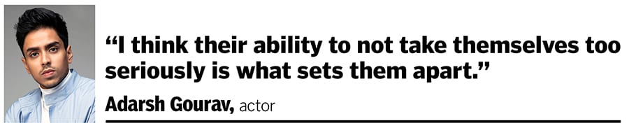 Known for their ‘strange casting’, Nidimoru and DK have always experimented with interesting combinations. Case in point, their latest work Guns & Gulaabs, a thriller-comedy web series on Netflix, starring Rajkummar Rao, Adarsh Gourav, Dulquer Salmaan and Gulshan Devaiah. Given their different styles when it comes to shooting and very few takes, actors find their approach refreshing. “I think their ability to not take themselves too seriously is what sets them apart," says Gourav. “In spite of attaining as much success as they have, the fact that they don’t take themselves too seriously extends to the fact that their characters have almost like a sense of carelessness to them, but not really carelessness where they leave the scope for anything to happen."