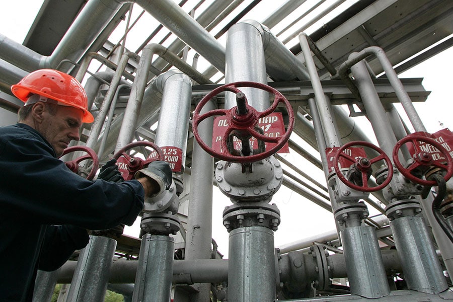 A file photo of a worker turns a valve at the Rosneft oil refinery in Tuapse at the Russian Black Sea coast. Image: Sergei Karpukhin / Reuters