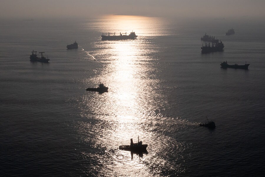 Ships awaiting inspections are seen anchored off the Istanbul coastline in Turkey. Image: Chris McGrath/Getty Images