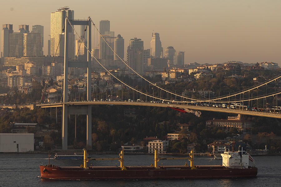 A bulk carrier transits the Turkish-controlled Bosphorus. Image: Chris McGrath/Getty Images