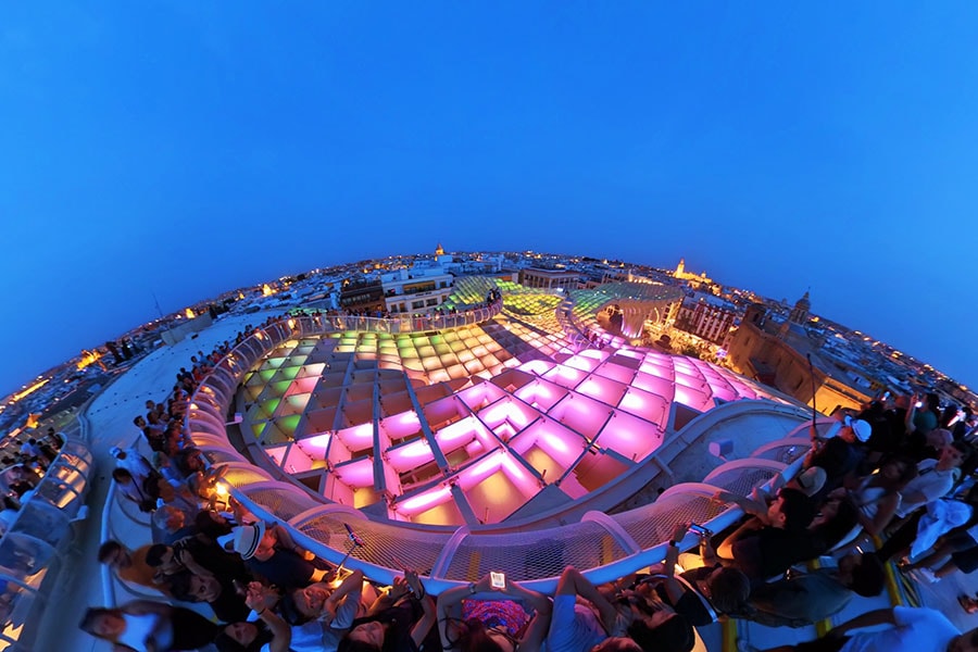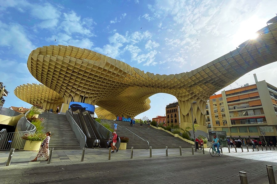 "Las Setas de Sevilla," also known as Metropol Parasol, is the largest wooden structure in the world, measuring 150 by 70 meters and standing 26 meters tall. Image: Veidehi Gite