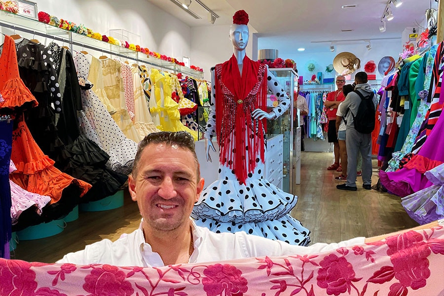 “The flamenco dress is unique in Spain, adapting annually to the fashion industry"s changes in textiles, prints, and styles," says Retamero. “Each collection is driven by a different inspiration, and it takes us one week to design, stitch, and complete a flamenco dress. Every season brings new colours, textiles, and forms." They are the best in Seville and all of Spain because they stay ahead of trends. They continuously adapt, blending current fashion with their own creative vision.