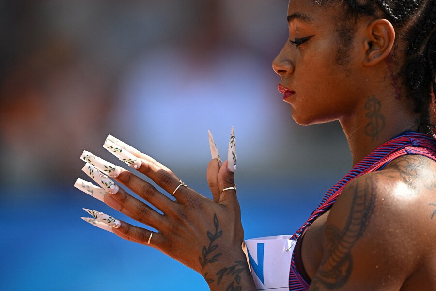 Queer athlete Sha’carri Richardson’s nails are the cynosure of attention before the start of Women"s 200m Heats at the World Athletics Championship in Budapest, Hungary, on August 23, 2023. Richardson ran a 10.65 to win her first-ever world title in the women"s 100 meters.