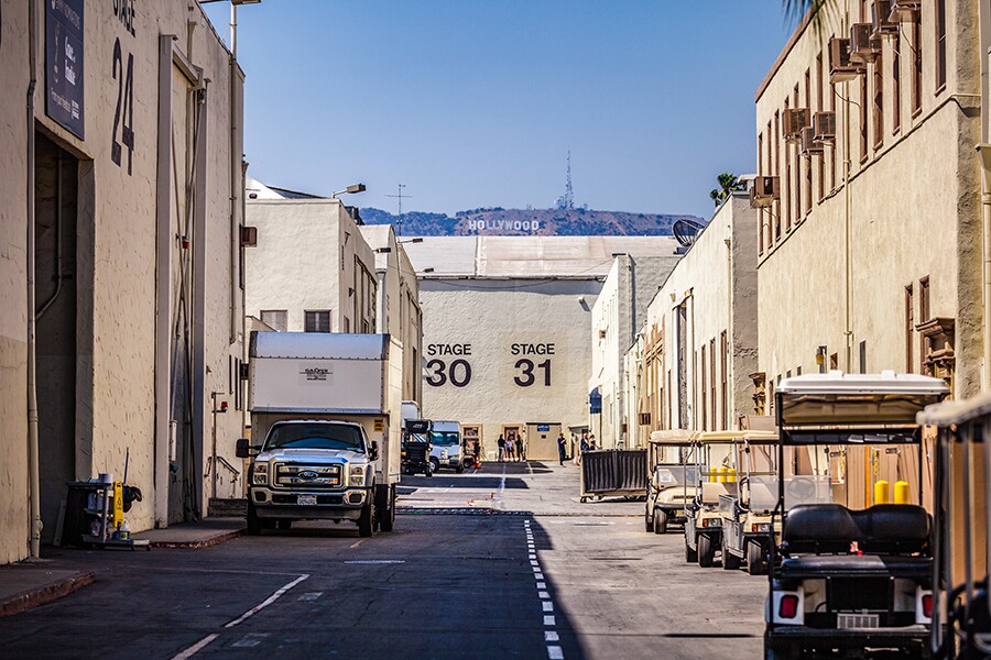Paramount Pictures Studio"s Stages 30 and 31, with Hollywood sign on the background. Image: Shutterstock