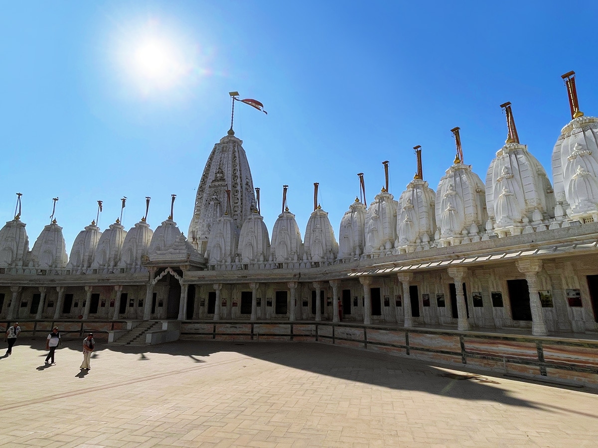 Bantar 72 Jinalaya temple complex spans 80 acres, with 72 white marble shrines in an octagonal design surrounding a central temple dedicated to Lord Mahavira, the 24th Tirthankara.Image : Veidehi Gite