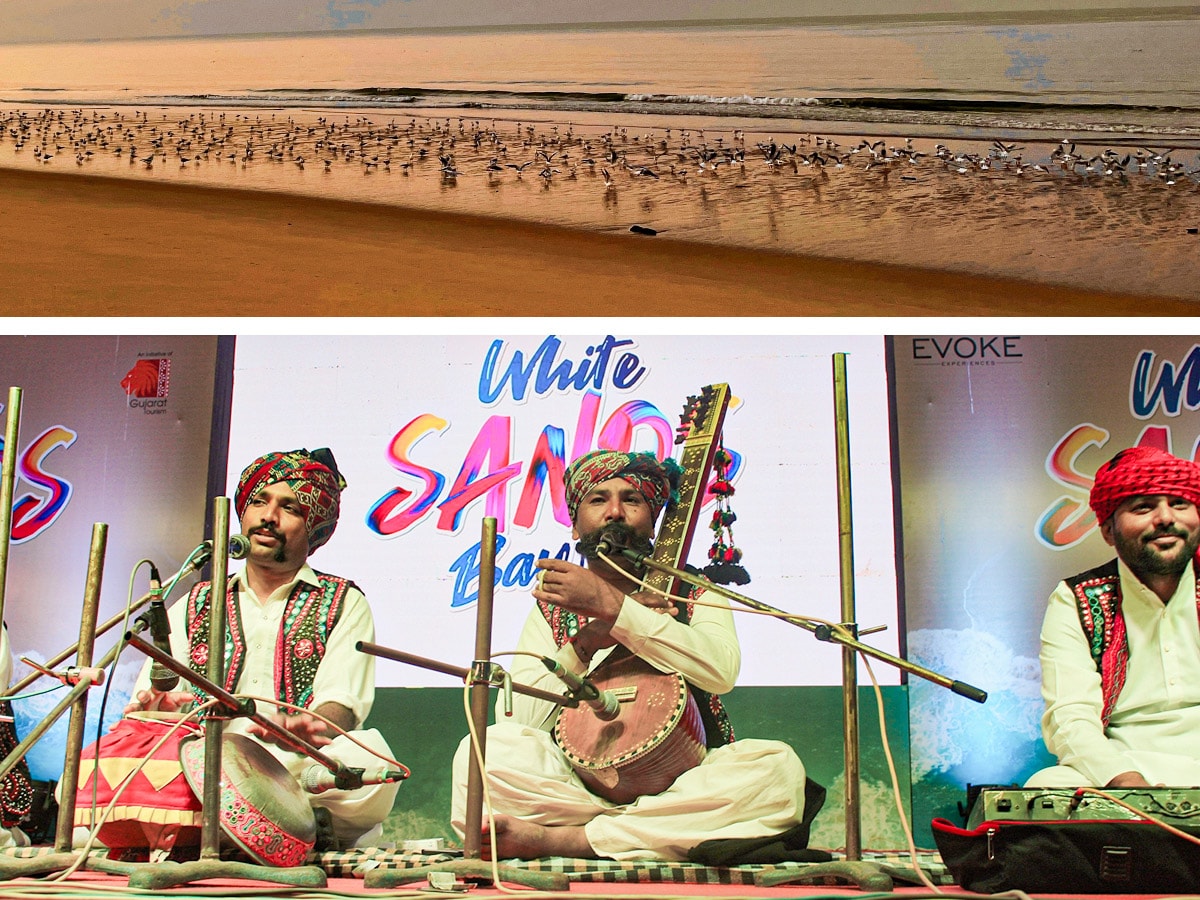 At sunrise, Mandvi Beach comes alive with the sight of hundreds of seagulls, while evenings are illuminated by lively Kutchi music performances by local artisans.Image: Veidehi Gite