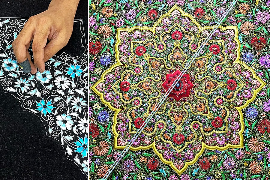 Zardozi, originally introduced to India by Nur Jahan, the 20th wife of Mughal emperor Jahangir, along with marble inlay work and perfumery, has a rich history. And that history comes alive in the labyrinthine alleys of Basai Khurd, adjacent to Shiv Kothi in Agra, at the humble abode of late Sheikh Shamsuddin. Fondly referred to as Shams, he is renowned for his role in resurrecting the art of zardozi and stands as the sole innovator in India credited with pioneering the technique of 3D zardozi embroidery. In present day, Faizan Uddin, his grandson, carries the torch of a legacy that reshaped the landscape of Indian embroidery.
