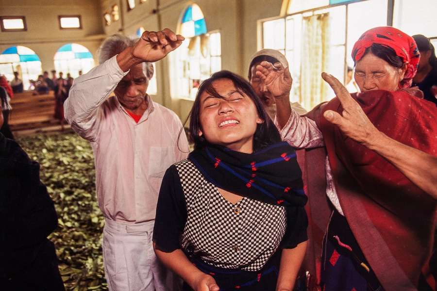 Today, Christianity is an accepted and vital part of Naga ethnicity. In the Gariphema village church, during and after a special revival Baptist service, young girls, women, and men go into ecstatic frenzy and trance, often speaking unheard languages in foreign tongues. They hold these revivals over two or three days to strengthen the villagers" faith. Long sermons and songs mark the occasion.