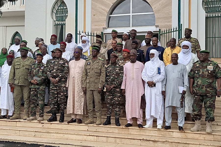 General Abdourahmane Tchiani and other army commanders post for a photograph at a meeting in Niger’s capital Niamey on July 28, 2023. Gen Tchiani, head of Niger’s Presidential Guard since 2011, appeared on national television to declare himself the new leader of Niger, after his guards surrounded the presidential palace in a coup. This is the seventh coup in Western and Central Africa since 2020.
