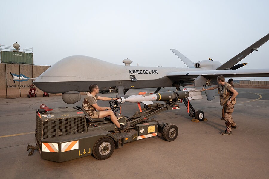 French soldiers remove a laser-guided bomb from a Reaper drone after a mission at the French BAP air base in Niamey, Niger, on May 14, 2023. The US, France and European countries have poured hundreds of millions of dollars of military assistance into Niger. France has 1,500 soldiers in the country, though their fate is now in question. Washington has 1,100 US military personnel also in Niger, where they operate an important drone base in the city of Agadez. The European Union intensified pressure on Niger’s coup leaders by suspending security cooperation with the country.