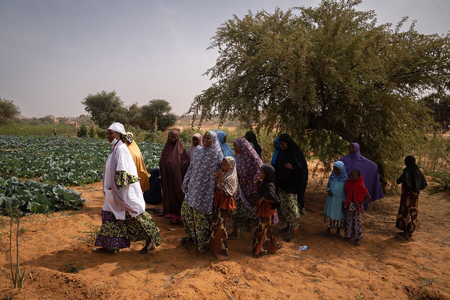 A group of veiled women and girls walking in the village of Ganguel, Sokoto, in Niger on January 11, 2023. Landlocked Niger is one of the world"s poorest nations, ranking 189th among 191 countries in the 2022 United Nations Human Development Index. 80 percent of Niger’s land area is covered by the Sahara desert. More than 40 percent of Niger’s budget comes from aid. Spain had recently announced it would triple the funds it allocates as cooperation aid to Niger, mainly focused on promoting food security and rural development, as well as health and gender equality. With France and the US having suspended aid, the military will have to look elsewhere for economic sustenance, possibly opening the door for Russia.