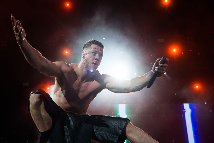 Dan Reynolds from Imagine Dragons performs at Hippodrome de Longchamp, for Lollapalooza Paris in July 2022 Photo by David Wolff-Patrick/Getty Images