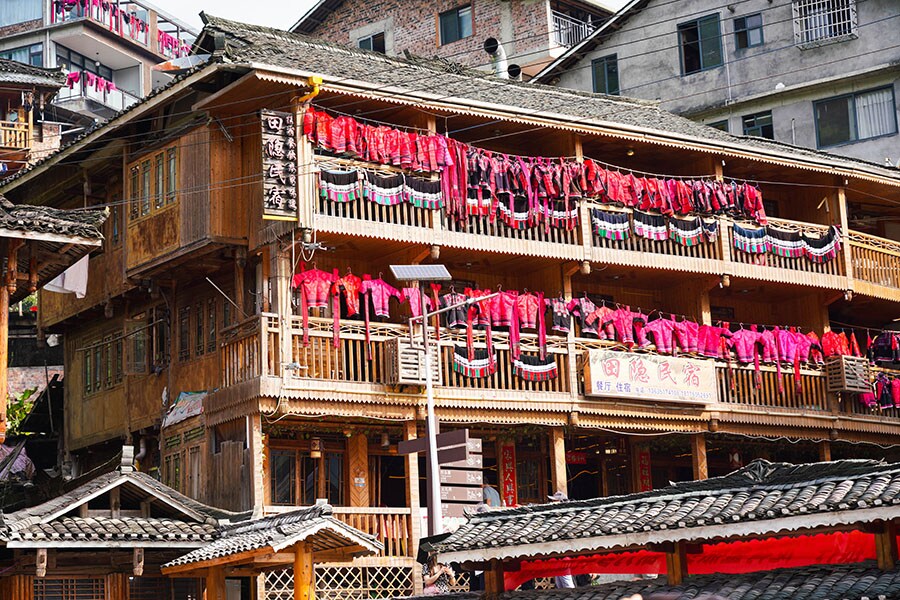 People of the Red Yao ethnic group hang up their clothes to celebrate the Drying Clothes Festival on July 23, 2023, in Guilin, China. ""Drying clothes festival"" is celebrated annually on the sixth day of the sixth lunar month, in the belief that the sunshine can help ward off bad luck and bring good fortune.