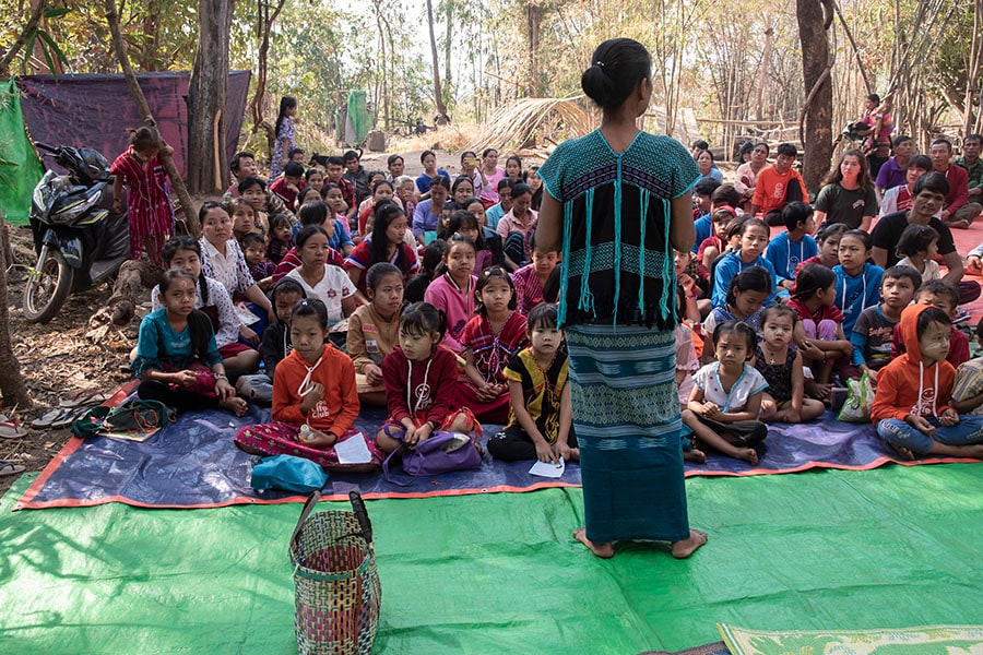 A Christian female pastor runs a Sunday mass at a Karenni Internally Displaced People (IDP) settlement in Myanmar on February 5, 2023. Since the February 2021 military coup, between 200,000 and 300,000 people have fled their homes in Kayah State, Myanmar.
