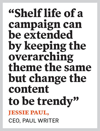 Shelf life of campaigns and properties depends on relevance. “It is possible to extend the shelf life by keeping the overarching theme the same but changing the content to be trendy," Paul says. Take, for instance, the Olympics. Though it has existed for ages, the sports and production values keep changing with the times to keep it relevant to the audience. “[Like] Nike ‘Just Do It’, the execution varies, and [it] becomes edgier to stand out," she adds.