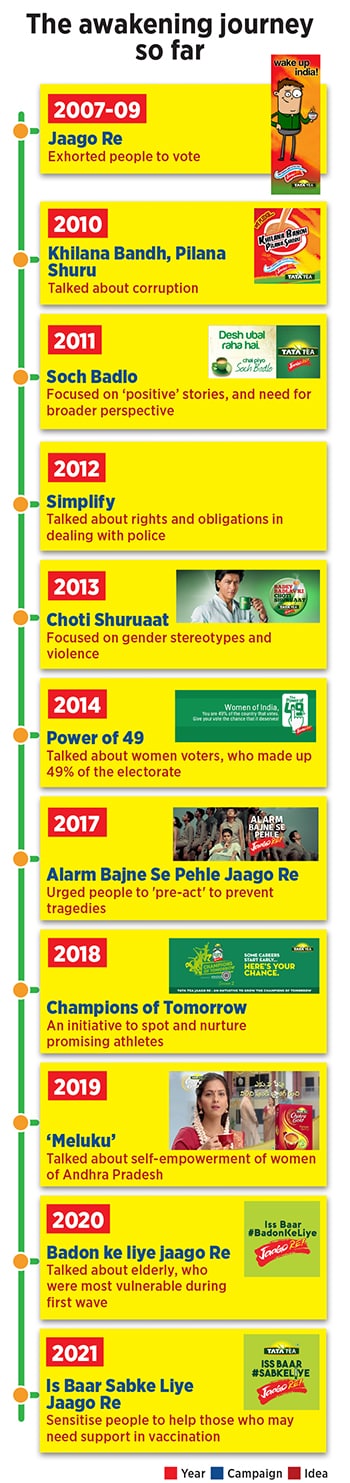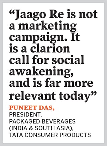 Das, for his part, reckons that Jaago Re is not a campaign. “It is a social initiative," he says. While conceding that there are other brands too talking about social causes, Tata Tea is the only one that walks the extra mile by doing things on the ground to facilitate change. Jaago Re, he stresses, is even more relevant today. Reason: Millennials and younger consumers have grown up in a world where they"re asking every brand and organisation questions such as ‘What do you stand for?’ and ‘What are the value values that you echo?’ “Jaago Re has been sincere and authentic," he asserts. “Andar se aawaz aani chahiye (It shouldn’t be forced, but genuine)," he says.