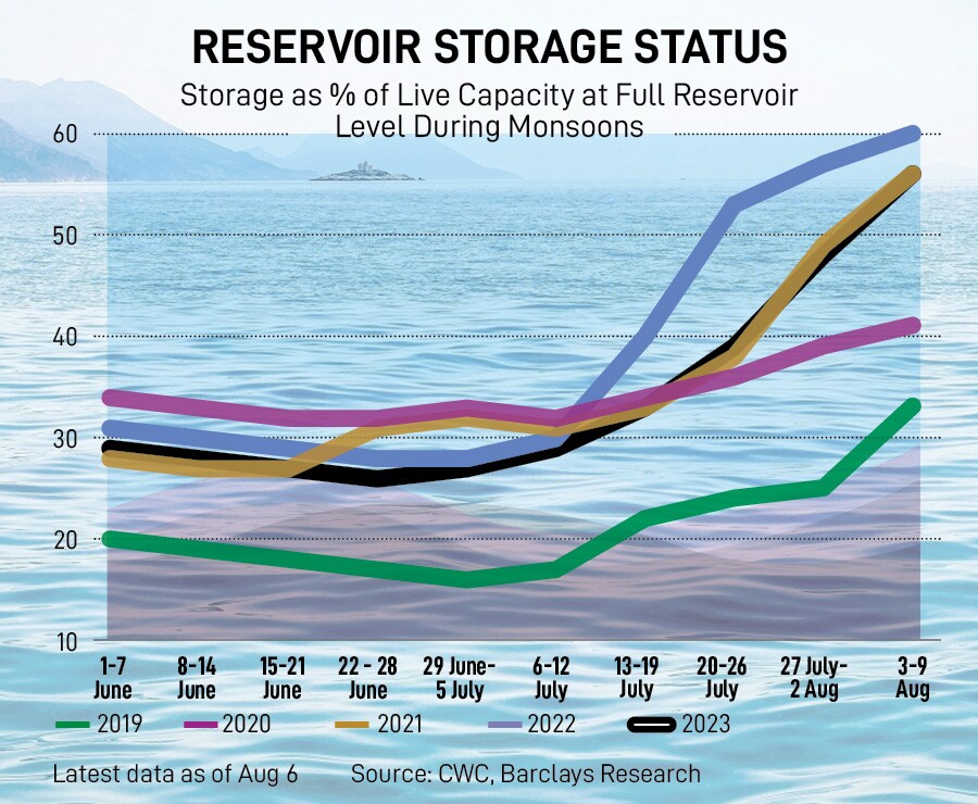 Currently, weak El Nià±o conditions are prevailing over the equatorial Pacific region, and are likely to further intensify and continue up to early next year. The increase in reservoir levels over the past few weeks seems to be following the pattern of 2021, when the country received ‘normal’ rainfall, although it remains lower than last year, says Barclays.