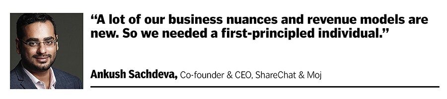 MSC gets a thumbs-up from his captain Ankush Sachdeva. “Manohar has played a critical role in our journey," says the co-founder and CEO of ShareChat and Moj. From raising funds to maintaining financial discipline in a young and aggressive startup is a challenging task.
