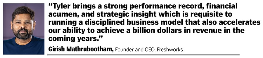 “Tyler brings a strong performance record, financial acumen, and strategic insight which is requisite to running a disciplined business model that also accelerates our ability to achieve a billion dollars in revenue in the coming years," Girish Mathrubootham, founder and CEO of Freshworks, had said in the press release announcing Sloat’s appointment.