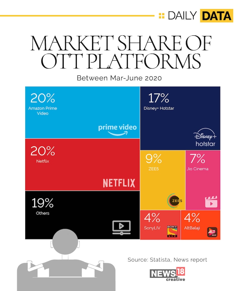 The global OTT giants are tied for market share in the country, followed by Disney Hotstar. A look at what India is glued to in lockdown