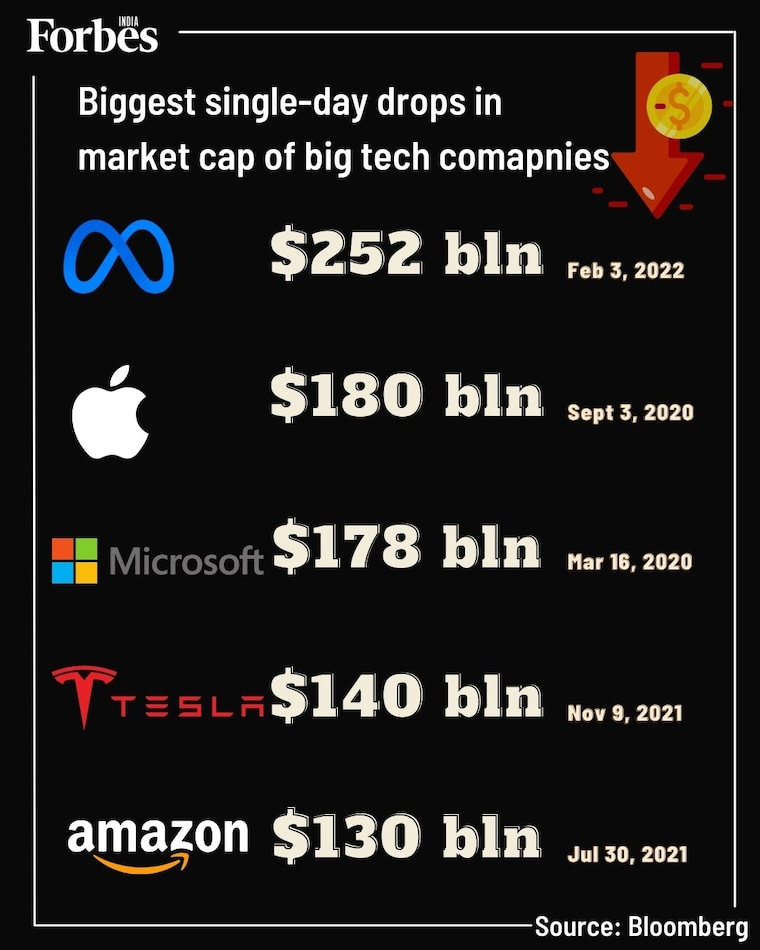 Recently Meta saw the biggest drop of $252 billion in its market capitalisation. Here's a look at other tech giants that have suffered big drops in the past two years