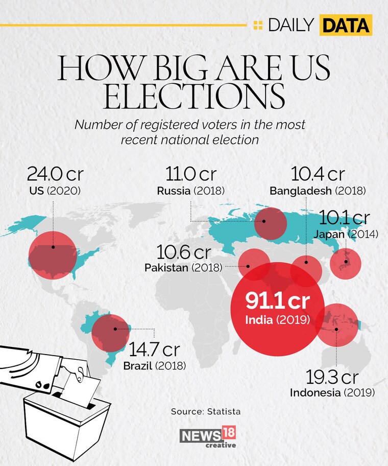 A look at the number of registered voters in countries around the world, to determine the scale of the democratic process