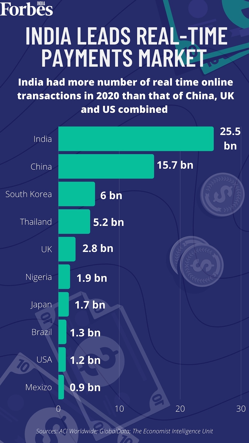 At 25.5 billion real-time online transactions, India surpassed China's 15.7 billion, UK's 2.8 billion, and US's 1.2 billion transactions in 2020 pandemic year
