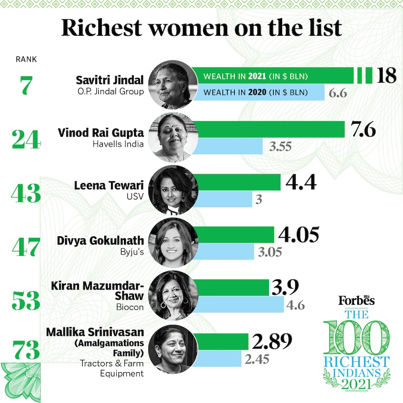 Savitri Jindal, Divya Gokulnath, Kiran Mazumdar-Shaw, among others have made it to the list as the richest women in India