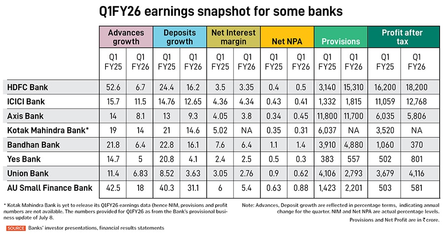 Motilal Oswal’s Aggarwal says that though credit growth has been largely muted in Q1, a recovery can be expected in the coming quarters. “We estimate a growth of 11.5 percent for FY26 as we expect demand environment to improve aided by lagged impact of reduced tax rates, reduction in borrowing costs and some uptick in corporate demand as credit substitution via bond-market wanes," he says.