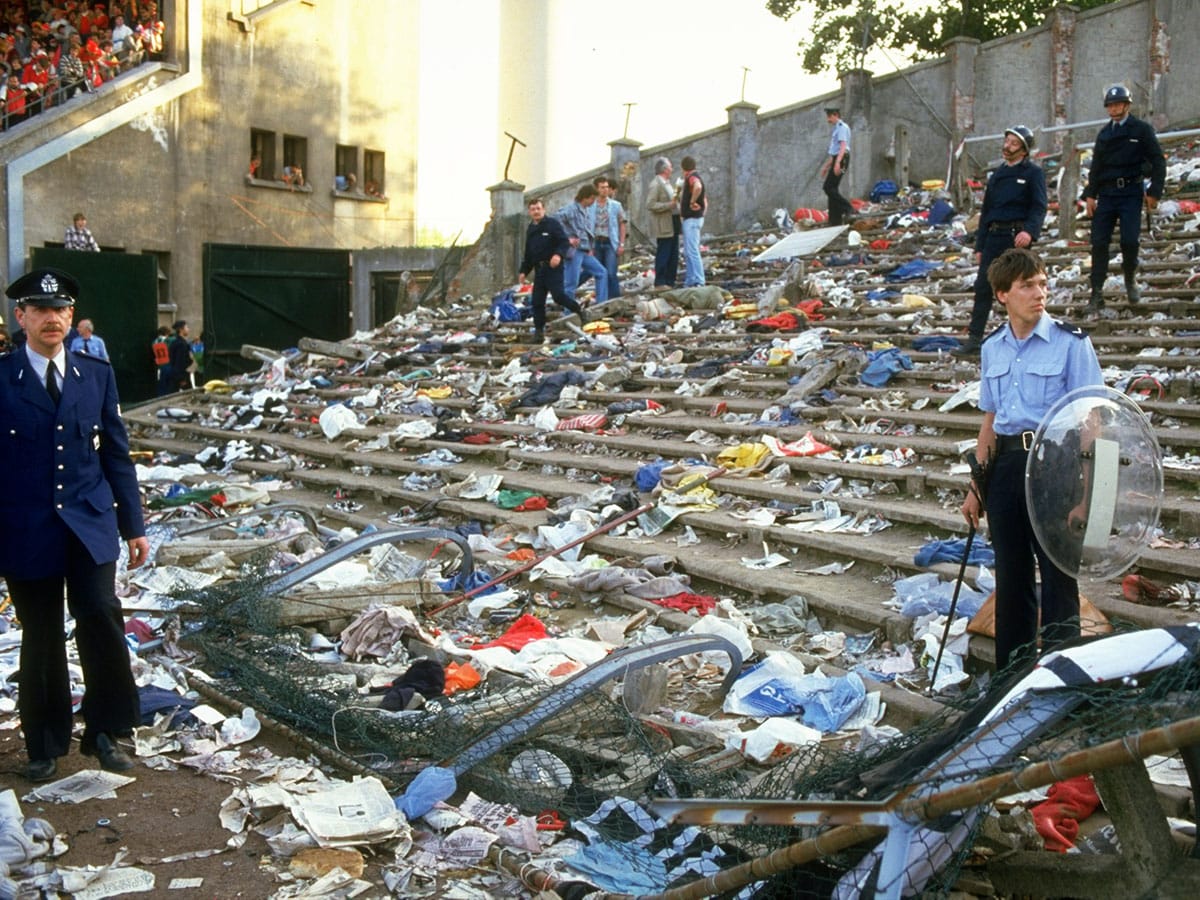 The 1985 European Cup final between Juventus and Liverpool at the Heysel Stadium in Brussels made headlines for the wrong reasons as fans, fearing violence, tried to exit only to be blocked by a wall that later crumbled on them. Thirty-nine fans, mostly Italian, were killed and hundreds injured.