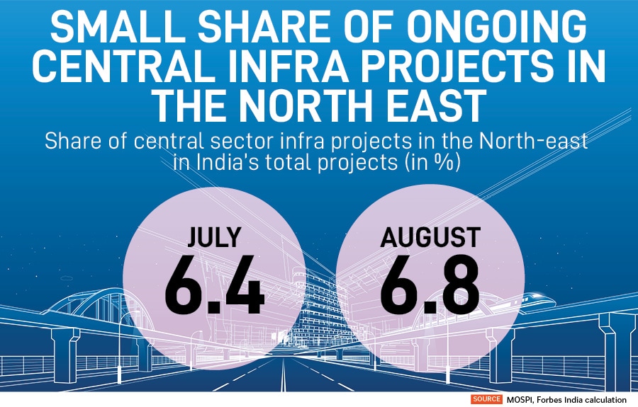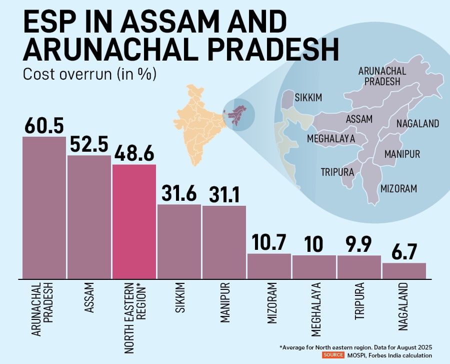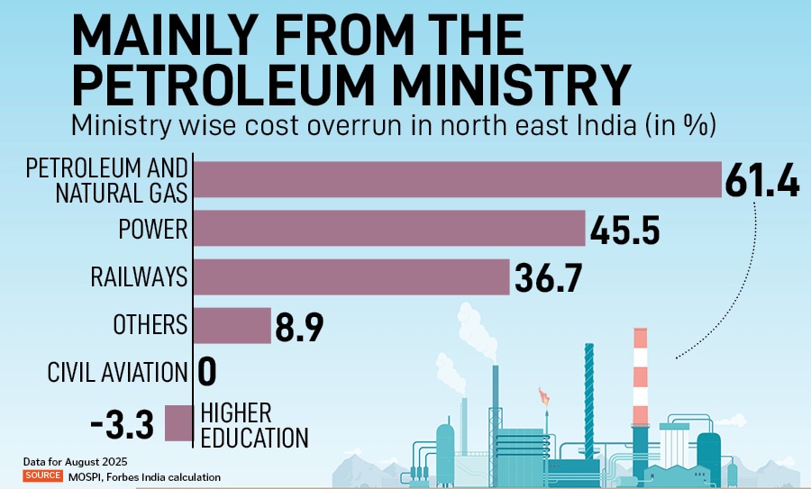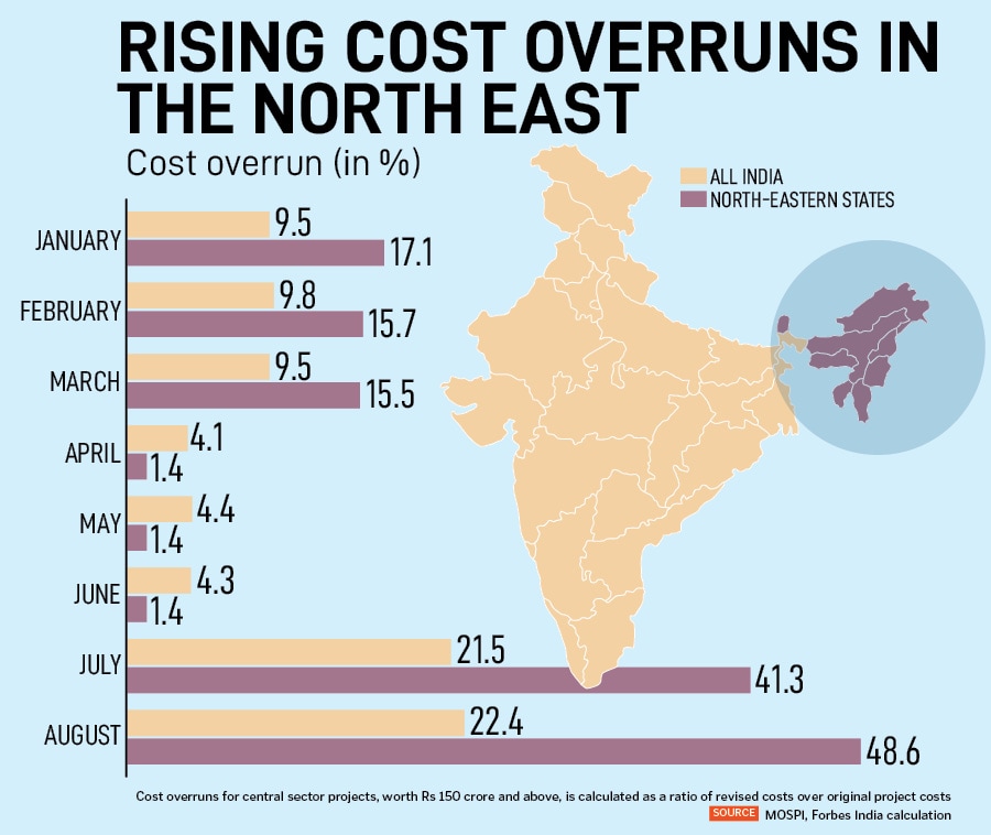 Northeastern states’ average cost overrun stood at 48.6 percent, more than double the 22.4 percent cost overruns recorded for all of India in August