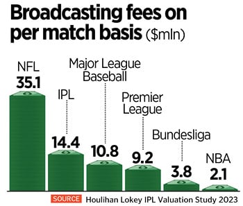 Not just IPL, even the Women’s Premier League (WPL) attracted a lot of eyeballs, due to the bidding wars during the auction. The media rights were bought by Viacom18 (both television and digital rights) for $120 million. On a per-match basis, this is the highest in the world among women’s sporting leagues, stated the report. The final of the WPL, between Mumbai Indians and Delhi Capitals had more than 10 million new viewers tuning in.