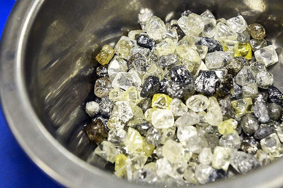 Rough diamonds in a bowl are seen at Alrosa Diamond Sorting Center in Mirny, Siberia. According to industry experts, over 30 percent of rough diamonds mined in Russia are imported to India, with Surat being the major cutting and polishing centre of smaller size rough diamonds. Though sanctions on Russian mining firm Alrosa were imposed in February 2022, the ban was on big rough stones, not small roughs, Surat"s field of expertise. Alrosa is a major supplier of low-quality roughs, which are cheaper, low in volume and high in quantity. These are fast-moving diamonds and require high labour deployment. Russia contributes around 30 percent of total rough diamond imports in India. Due to sanctions, most of the rough import from Russia is being done through round-tripping from third countries, according to industry sources.